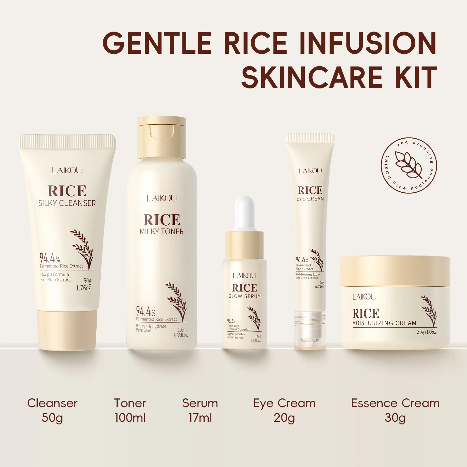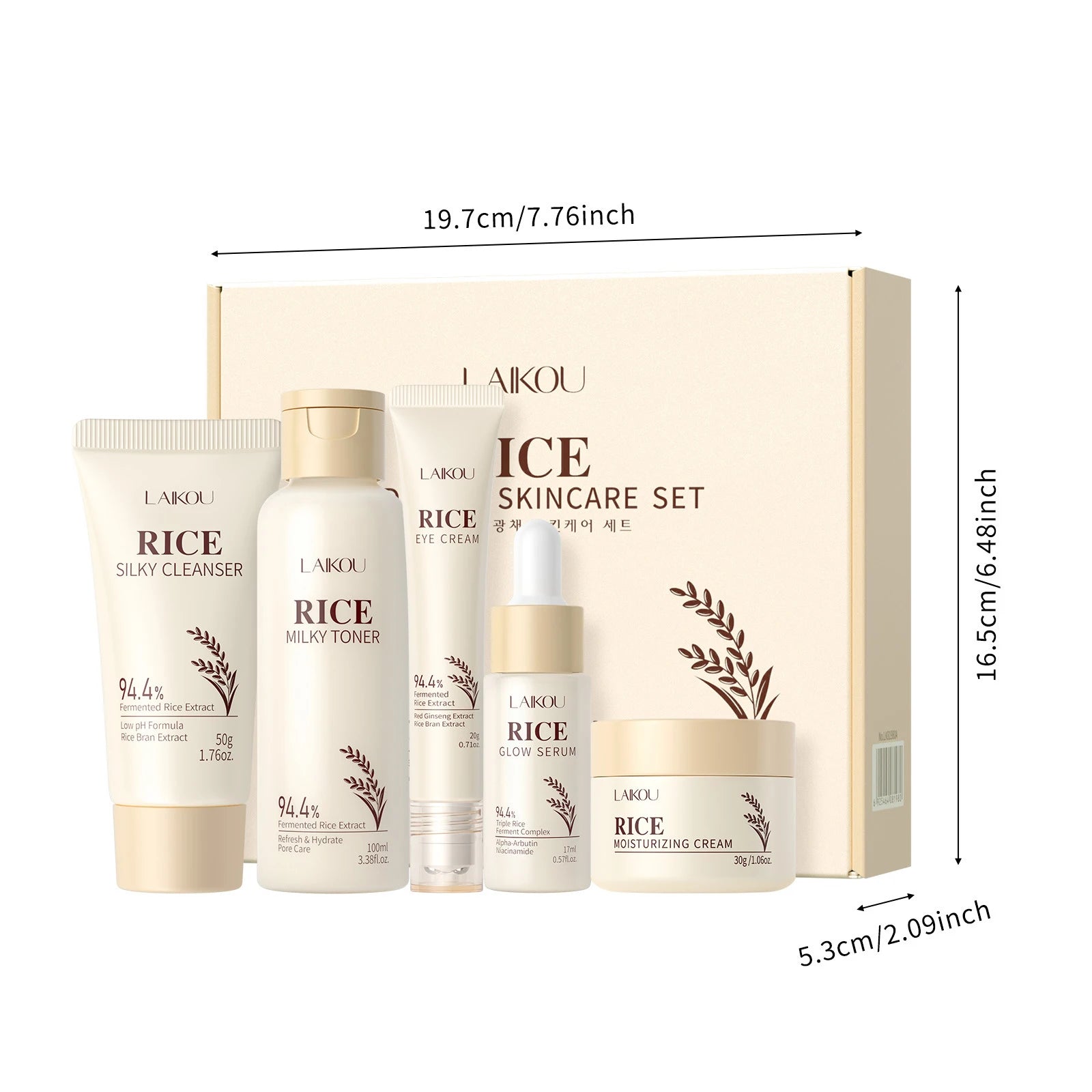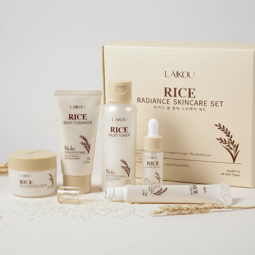 5PCS Rice Extract Skincare Set Niacinamide Hyaluronic Acid Gentle 24H Hydration For All Skin Men Women Face Body Daily Holiday