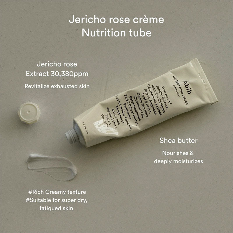 Rejuvenate your skincare routine with the Abib Jericho Rose Crème Nutrition Tube, a deeply hydrating formula designed to invigorate and nourish your complexion. This luxurious cream harnesses the power of Jericho rose extract, renowned for its ability to thrive in harsh environments, to imbue your skin with moisture and vitality.