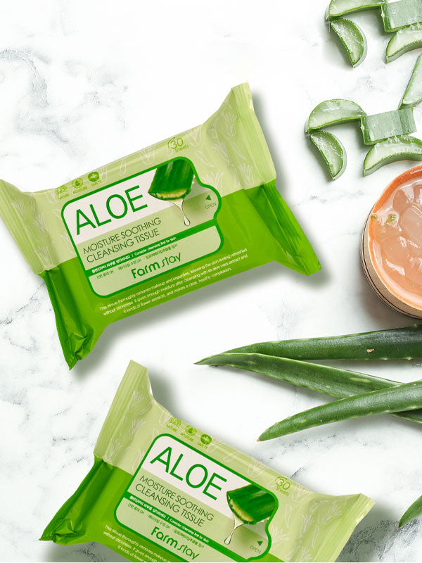 Indulge in the refreshing and calming benefits of the Farm Stay Aloe Moisture Soothing Cleansing Tissue. This skincare essential, comprising 30 soft and gentle sheets, is designed to pamper your skin while ensuring thorough cleansing.