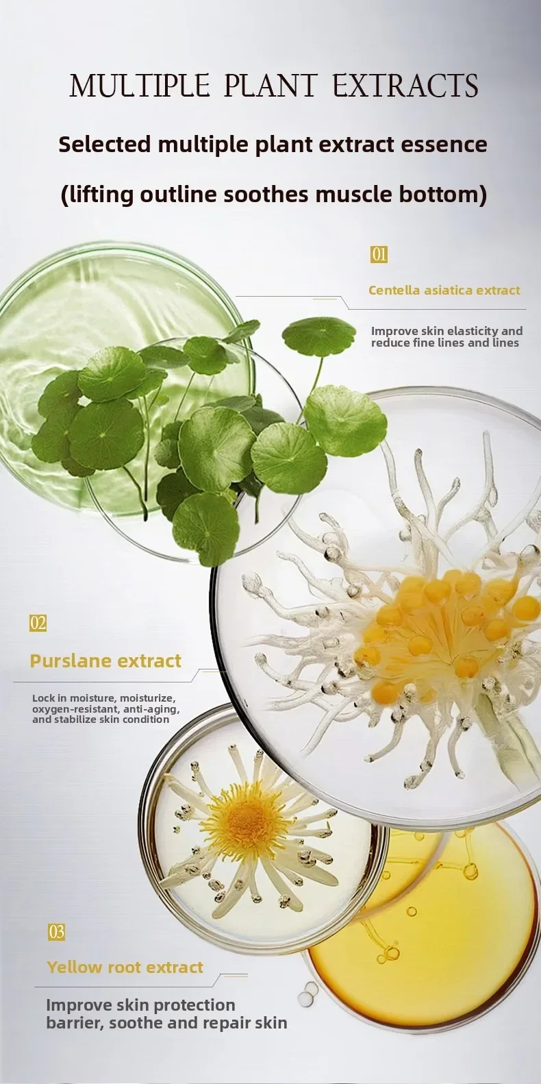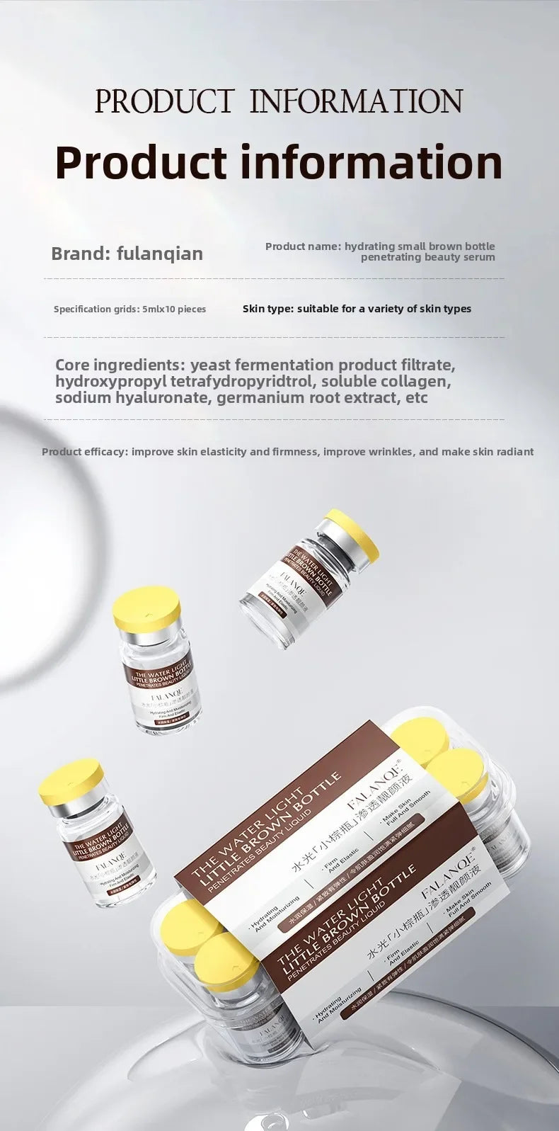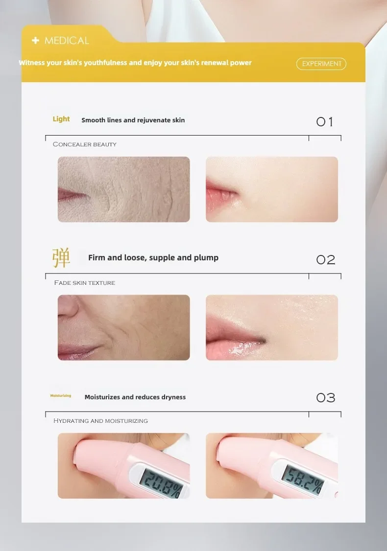 Rich in algae essence, it gives the skin a moist and smooth plaid skin care experience; it condensates da sodium, polypeptides, and plant extracts, adds anti-wrinkle and lightening lines, is moisturizing, and relieves skin tightness and discomfort, leaving the skin hydrated, translucent, tender and smooth.