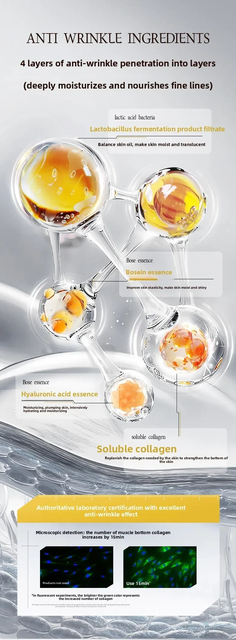 High End Anti-Wrinkle Face Skin care Serum Fade Fine Lines Facial Moisturizing Brightning Anti Aging Firming Skin Care Essence