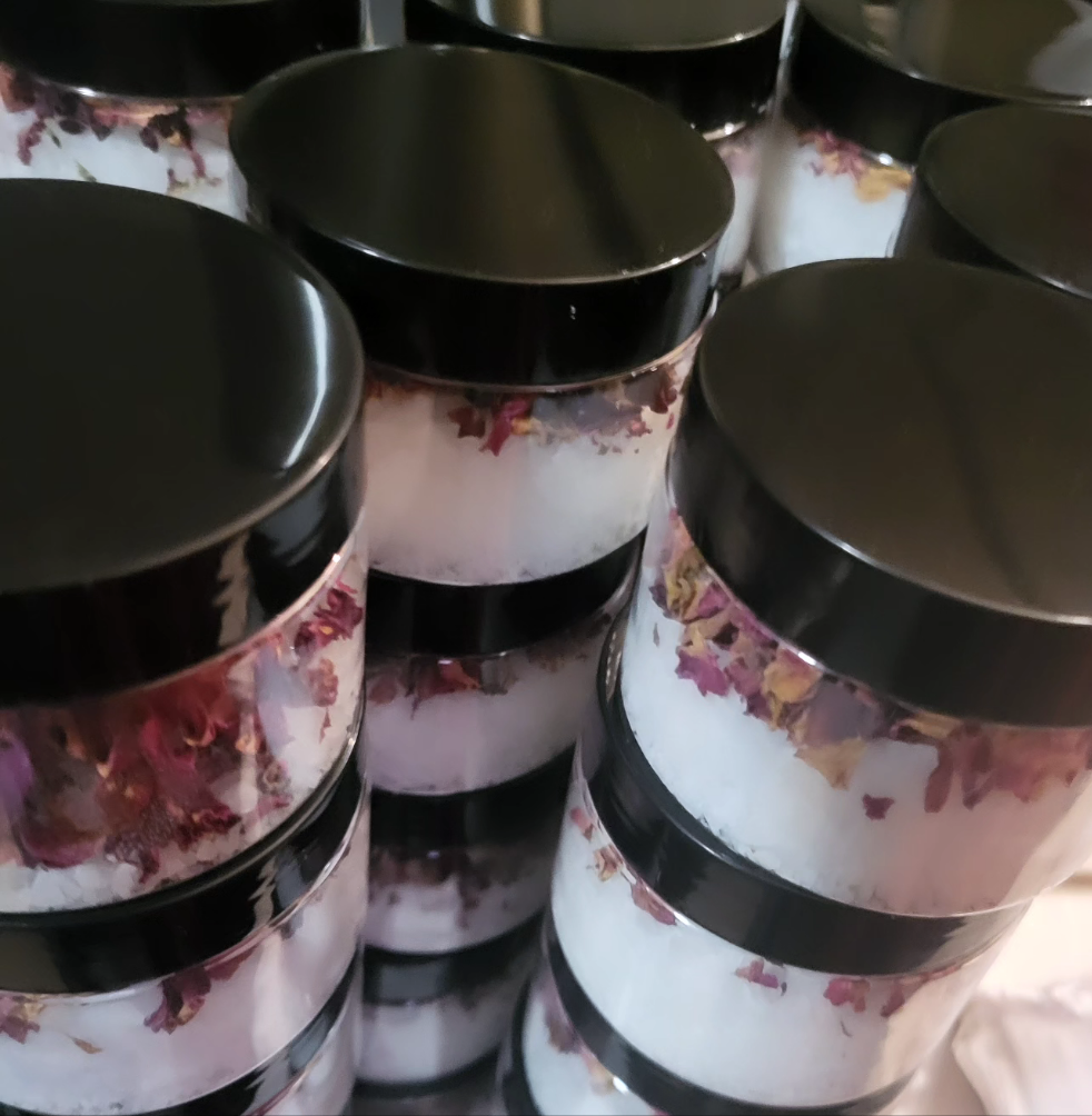 Pamper yourself and indulge in some much-needed self-care with Magnesium Calm Bath. Made with natural lavender and rose petals, and infused with the calming scent of lavender, this bath soak is the perfect way to relax and unwind after a busy day. Treat yourself to a luxurious, spa-like experience in the comfort of your own home with the 12oz jar. Give yourself the care and relaxation you truly deserve with Magnesium Calm Bath.