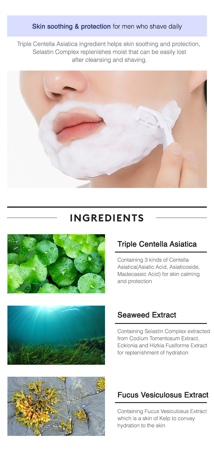 This dual-purpose product is designed to streamline the grooming routine of the modern man. Combining the functions of a cleanser and a shaving foam, it offers a practical solution for maintaining skin's cleanliness and appearance with minimal effort. The formula is enriched with ingredients known for their skin-soothing and moisturizing properties, ensuring a comfortable shave and a refreshed feeling afterward.