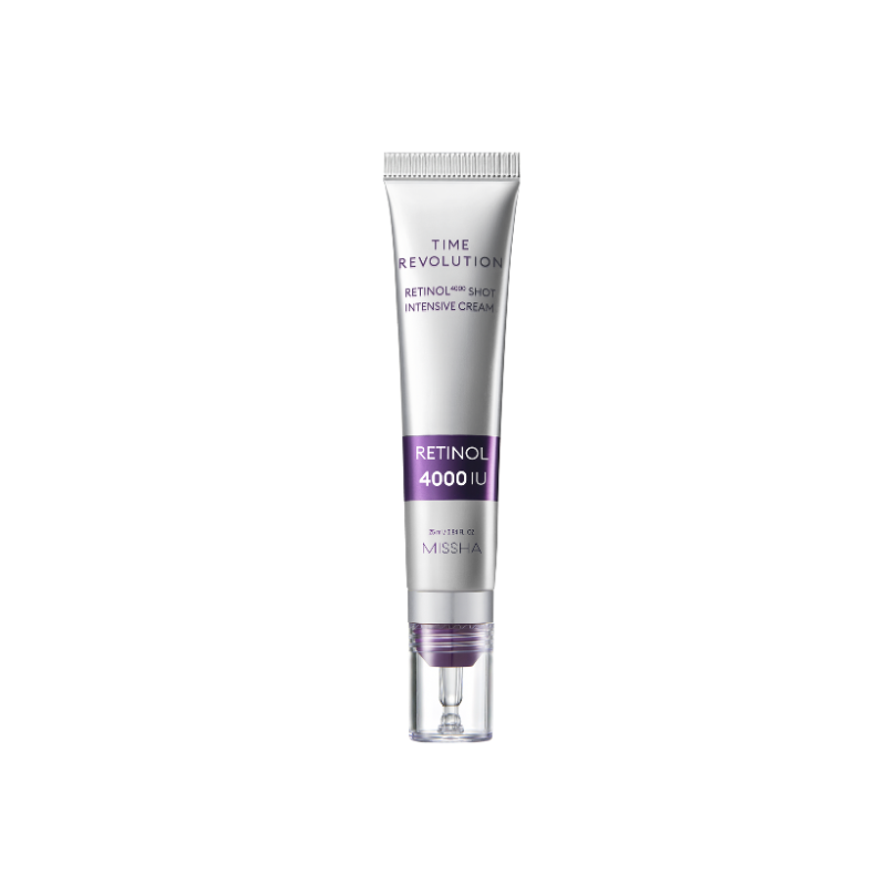 Experience the revitalizing effects of MISSHA Time Revolution Retinol 4000 Shot Intensive Cream, meticulously formulated to enhance skin's elasticity and restore a youthful radiance.