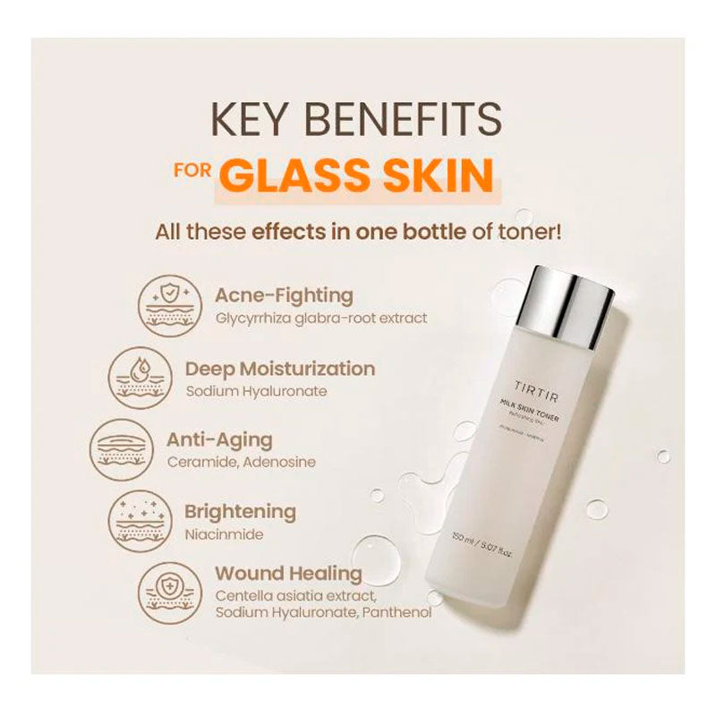 The TIRTIR Milk Skin Toner stands out not just for its hydrating and brightening capabilities, but also for its blend of soothing and skin-loving ingredients that promise to enhance your skin's natural beauty and health. Whether your skin is in need of a moisture boost, a brightening lift, or simply a soothing touch, this toner is designed to meet those needs with finesse and care.